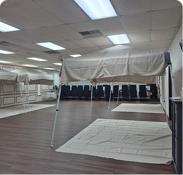 Held in Fellowship Hall, 2nd building” / “Se llevara a cabo en el salon Fellowship Hall, segundo edificio